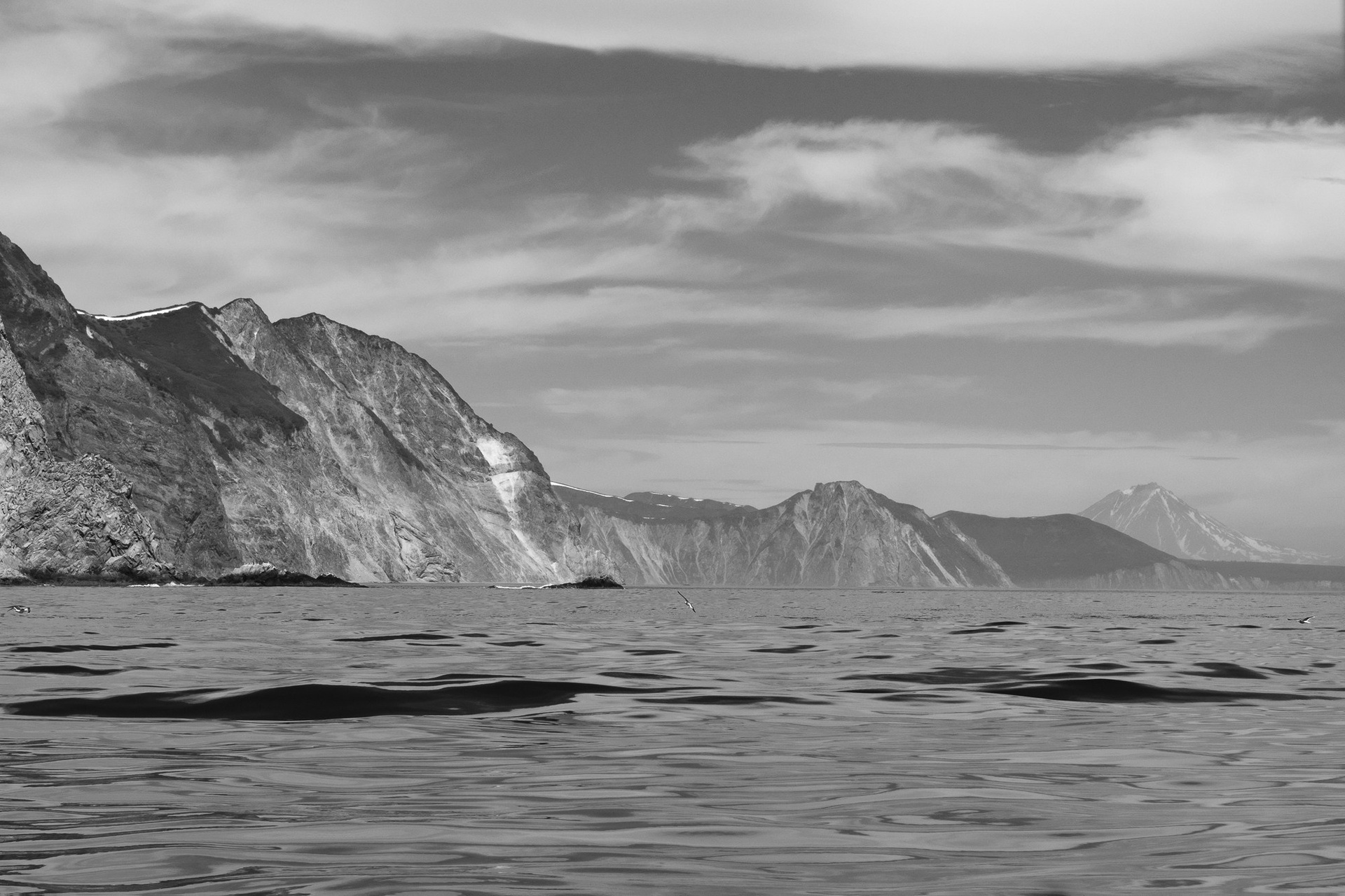 Глядя на вершины, окутанные облачным поясом и как бы парящими над землей, понимаешь чем именно вдохновлялся Хаяо Миядзаки в Небесном замке Лапута. Интересно, что прилетела я на Камчатку не ради вулканов. А именно они и произвели на меня самое сильное впечатление. Ехала к океану, мне очень хотелось увидеть китов, но увидела косаток. Про кита мы лишь услышали по рации, что его видели на выходе из бухты. Написала «не повезло» и стерла. Нет, это ужасно глупая фраза. Значит, в этот раз — так. Будет ли другой? На все воля Мироздания, ведь даже эту поездку не планировала. Просто со мной случилась — Камчатка.